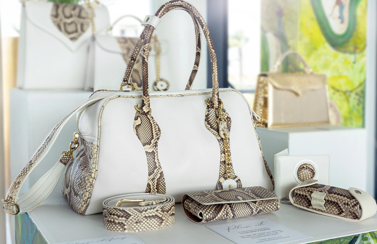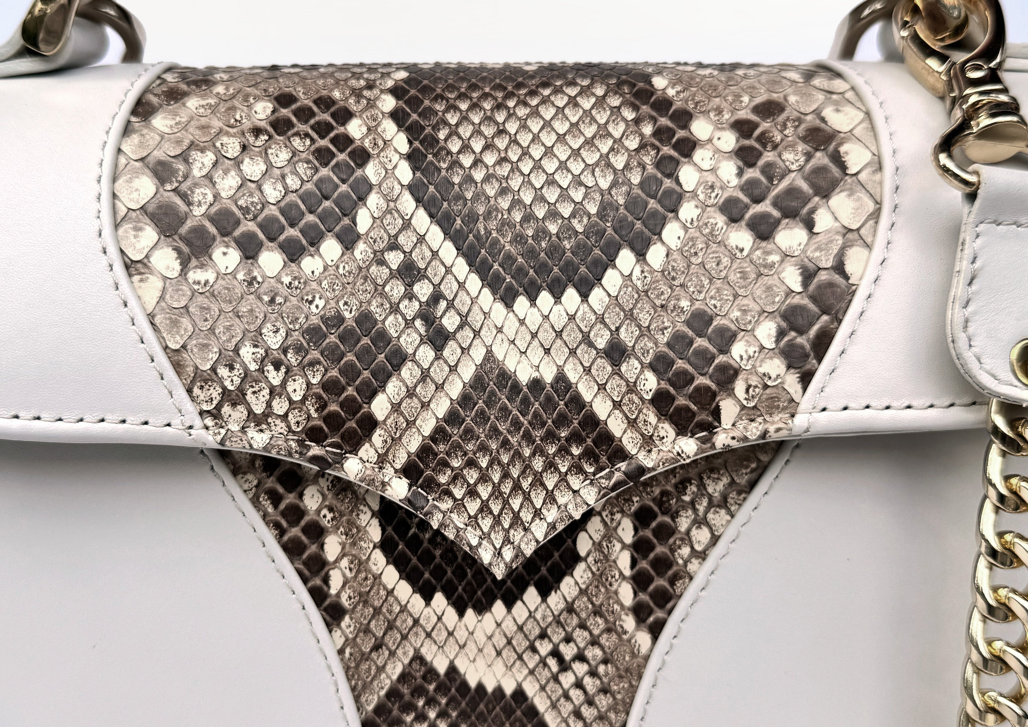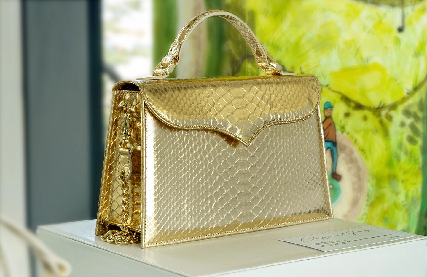 Made entirely from radiant gold python skin, it’s a piece that catches the light — and attention — without saying a word.