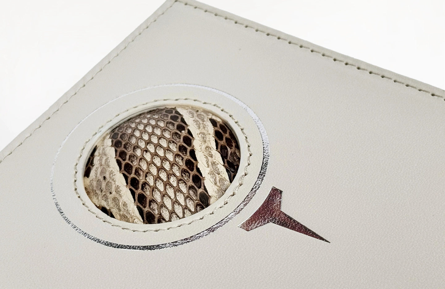Every round of golf deserves to be recorded in style. Our premium calf leather scorecard holder, crafted in an elegant cream shade, is entirely handmade and features a unique natural python inlay, artistically framed to echo the design of a golf ball and tee.